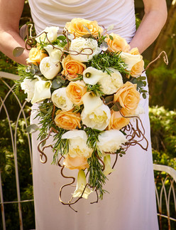 Explore with your bride what bouquet style will fit best with their wedding gown. Hand-tied bouquets complement ballerina and empire line dresses, while a cascading waterfall bouquet may better suit an A-line, column or mermaid style of gown to mirror the fall of the dress. Your bride may have a very definite vision of her bridal bouquet but you should offer your expertise if guidance is required.